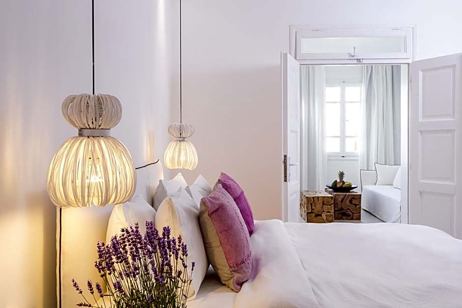 These suites are located on the first or second floor of the complex, offering furnished verandas, overlooking the pool and the Aegean sea. These chic rooms feature a king-size bed, a private bathroom with shower and Apivita toiletries, an outdoor Jacuzzi, a mini bar, LCD television with satellite channels, desk surface, and individually controlled air conditioning. Most Hippie Chic suites can accommodate up to 3 guests. Room size 35m2